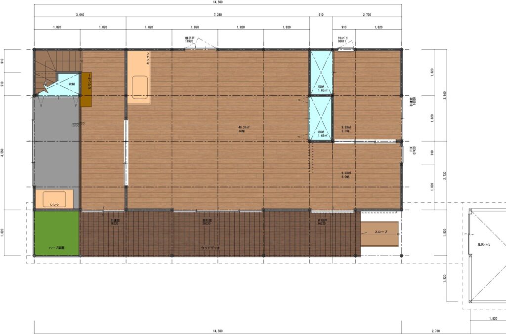 縁側を設けて、その端にはハーブの育てられる小さな菜園スペース